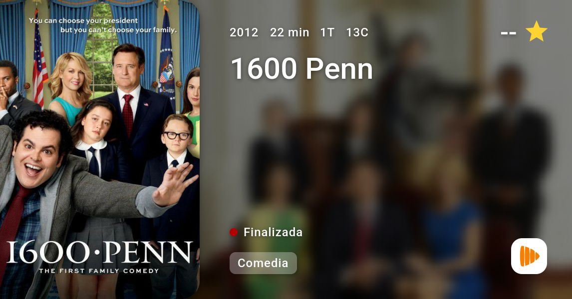 Serie de TV (2012-2013). 1 temporada. 13 episodios. Presentada como una comedia centrada sobre una familia disfuncional, "1600 Penn" se centra en Skip (Josh Gad), el hijo mayor e incontrolable que vuelve a su casa donde se convierte en una persona fiable y responsable además de ser el pegamento que une a la familia. Esta familia no es cualquiera: vive en la Casa Blanca. Bill Pullman interpretará el papel del presidente Dale Gilchrist, y Jenna Elfman ('Dharma y Greg') la Primera Dama de los Estados Unidos, Emily Nash Gilchrist. Amara Miller (The Descendants) será Marigold, la hija más joven del presidente (Bill Pullman). Aunque en principio Brittany Snow ('Harry´s Law') debía interpretar a Becca, la mayor de las hijas del presidente que es descrita como perfeccionista, finalmente será Martha MacIsaac ('Greek') la encargada de darle vida ya que físicamente se parece más a los miembros del reparto que han de interpretar a su familia. Andre Holland ('Friends With Benefits') será Marshall Malloy, un agregado de prensa para la Casa Blanca.