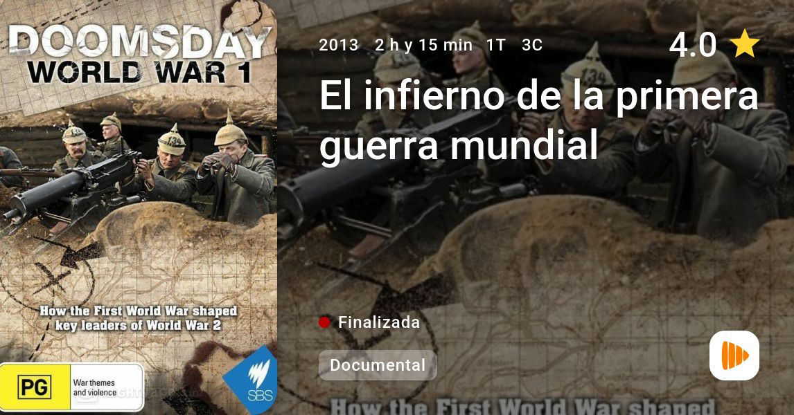 Miniserie de TV (3 episodios). Más de 65 millones de hombres de treinta países lucharon en la Primera Guerra Mundial. Cerca de 10 millones de ellos murieron. Los Aliados perdieron cerca de seis millones de soldados mientras que las potencias centrales contabilizaron 4 millones de bajas entre sus tropas. Hubo más de 35 millones de víctimas civiles y militares: 15 millones de ellas perdieron la vida. Sobre estos escalofriantes datos, nos recuerda el horror de la I Guerra Mundial en un día tan señalado planteándose preguntas como cómo empezó el conflicto o qué papel desempeñaron algunas de las figuras clave de la Segunda Guerra Mundial en la guerra anterior.