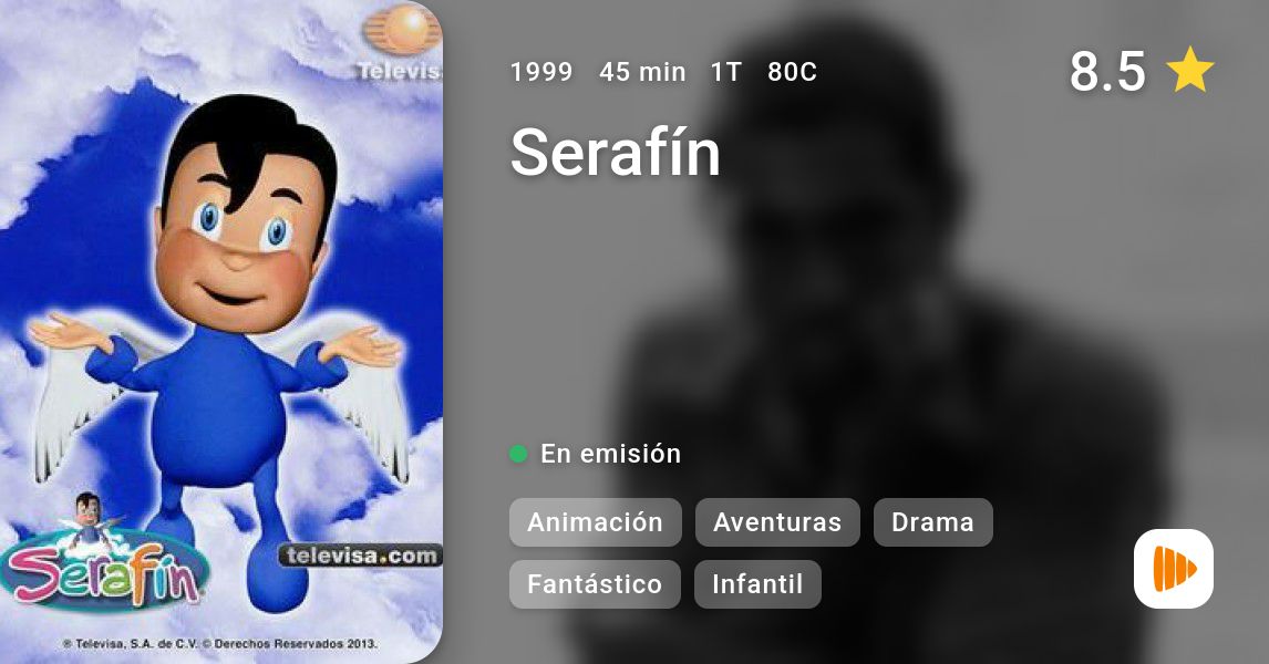 80 episodios (1999). Serafín es un pequeño ángel feliz y de buen carácter, con un pequeño defecto: es muy travieso. Un día en el Cielo se mete en tantos problemas que lo mandan a la Tierra para aprender a ser un ángel guardián. Cuando llega a tierra, siente mucho miedo de lo que ve, y sin saber qué hacer, encuentra refugio y ayuda inesperada en una vieja casa abandonada en la Ciudad de México. Allí conoce a Pepe (Jordi Landeta), un niño muy infeliz, quien vive con su querida madre Carmen (Maribel Guardia), su ingenioso abuelo Joaquín (Miguel Pizarro) y su abusivo padrastro Raúl (Guillermo García Cantú). Serafín se decide a traer felicidad a la vida de Pepe y se convierte en su ángel de la guarda. Juntos aprenderán grandes lecciones de la vida y experimentarán increíbles aventuras.