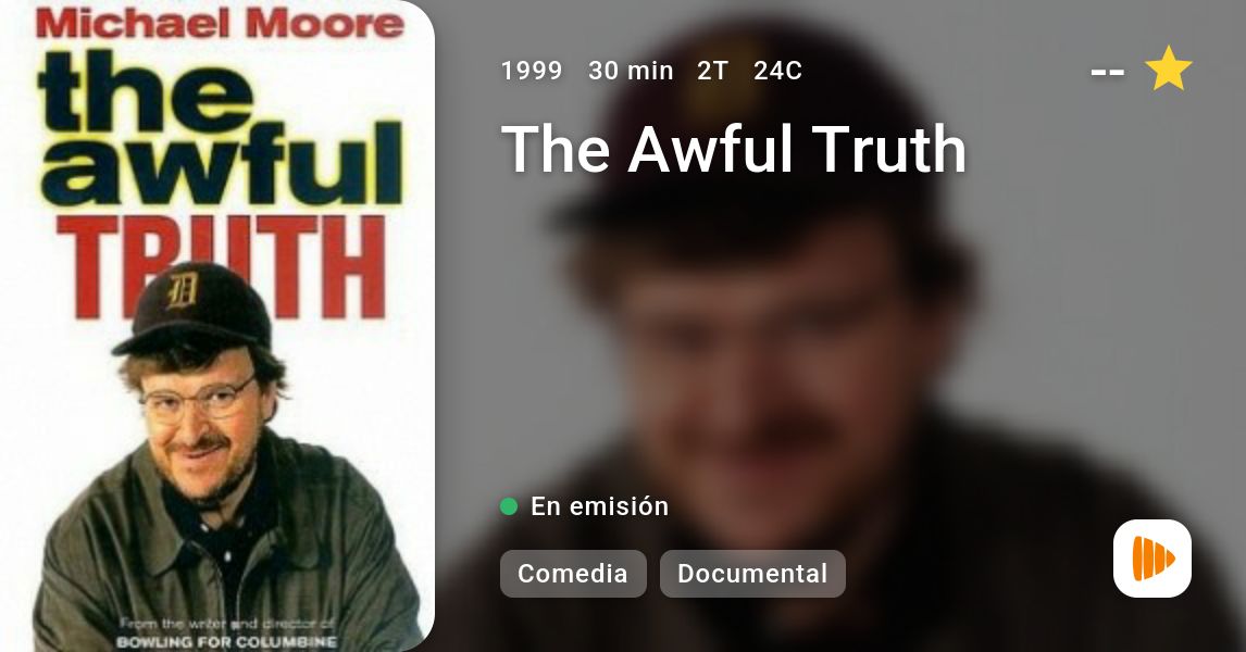 Serie de TV (1999-2000). 24 Episodios. Producido, dirigido y conducido por el propio Moore, The Awful Truth presenta documentales de corta duración en los que el realizador permanece fiel al espíritu de su ópera prima Roger and Me: hurgar sin frenos en las miserias, contradicciones e injusticias de la sociedad americana y, especialmente, en la responsabilidad del sector empresarial y financiero.
