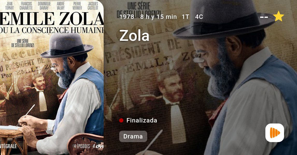 4 episodios. Fruto de un trabajo minucioso de los historiadores, es tanto un retrato del ilustre escritor naturalista como una imagen de la sociedad francesa de finales del siglo XIX, dividida por el caso Dreyfus. Basada en la biografía de Émile Zola de Armand Lanoux.